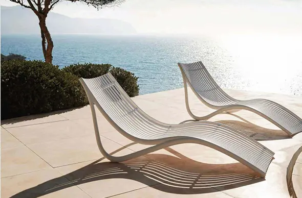 Sun Loungers & Chaises: Commercial-grade, weather-resistant materials like polymer wood and aluminium.